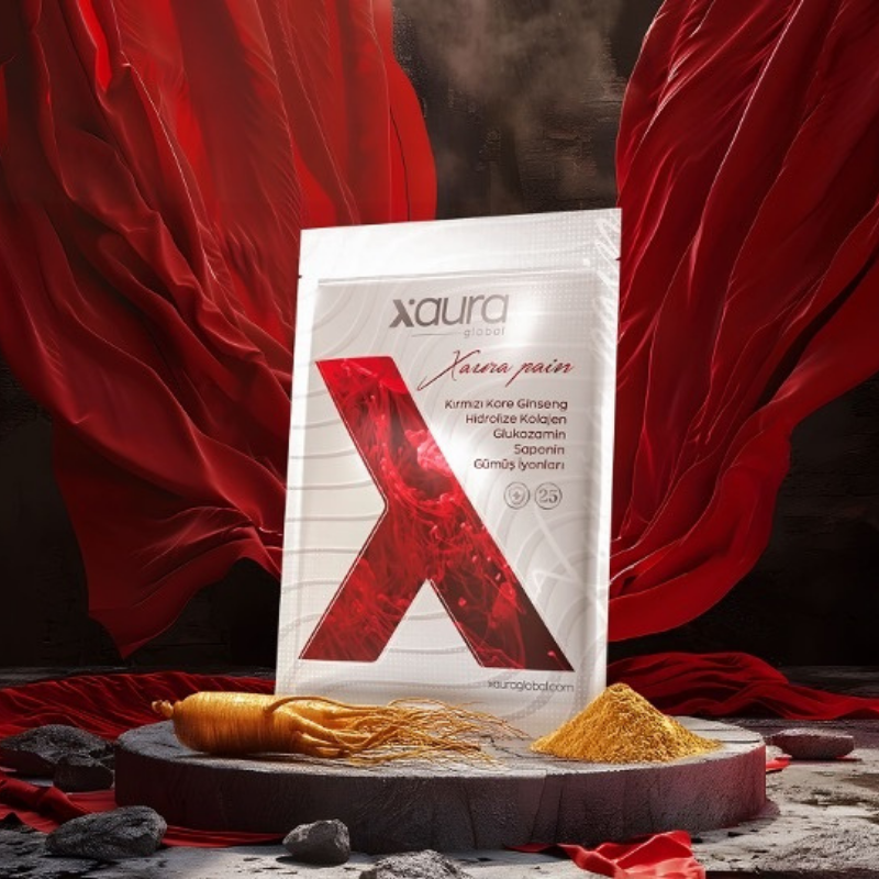 X Aura Pain, gelişmiş formülüyle kas ve eklem ağrılarına doğal destek sunar. İçeriğindeki Kırmızı Kore Ginseng, Hidrolize Kolajen, Glukozamin, Saponin ve Gümüş İyonları sayesinde dolaşımı destekler, vücudu rahatlatır ve uzun süreli kullanımda iyileşme sürecine katkıda bulunur.